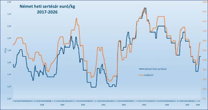 A februárban kezdődött áremelkedést a malac- és a vágóállat-árakban szinte egyszerre érzékeltük, ami egyértelműen a kínálat szűkösségére utal, és ez jellemzően nem rövid távú tendencia. Az emelkedést a vágósertések szűkülő elérhetősége indította el.