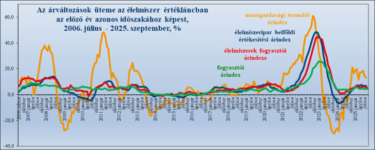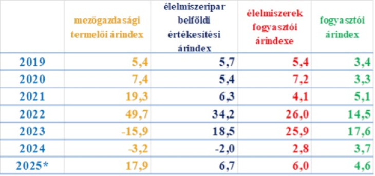 Itt jegyezzük meg, hogy bár az elmúlt években több súlyosan száraz időszak is volt nemcsak idén, hanem 2022-ben, „az évszázad aszálya” idején, ami egyes növényi és állati termékeknél okozott árhullámokat, éppen a növekvő import miatt sokkal nagyobb drágulás lett a következménye a rohamosan gyengülő forintnak…