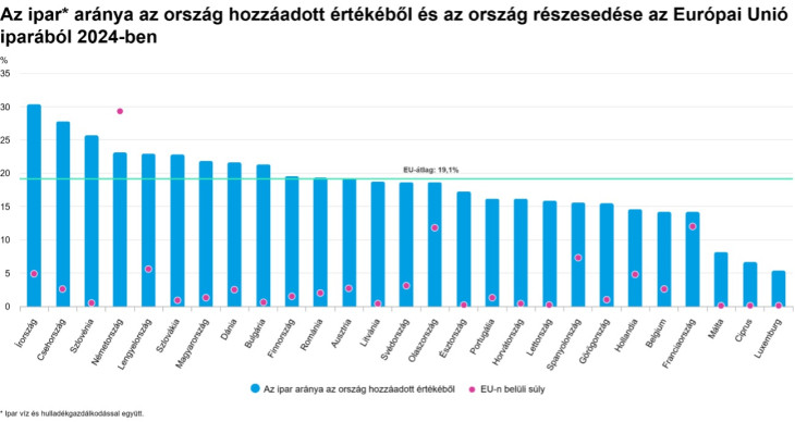 2025 végére oda jutottunk, hogy az ipari termelési volumen harmadik éve csökken, és a gazdaság recesszióközeli állapota jelentős részt az ipar gyenge teljesítményének tudható be, miközben még mindig igen jelentős az ipar részaránya Magyarországon mind a termelésben, mind a foglalkoztatásban.