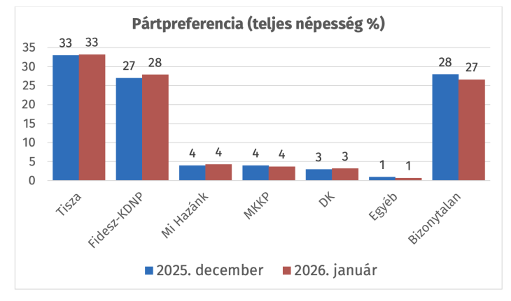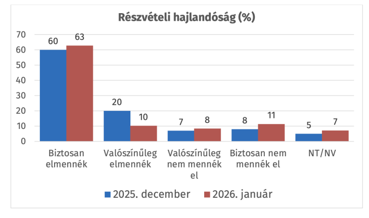 Az újév még intenzívebb kampányt hozott, a Fidesz és a kormányközeli média teljes gőzzel állt rá a háború témájára, amely 2022-ben győzelemre segítette a kormánypárokat. Középpontba az életveszéllyel és harmadik világháború kitörésével való fenyegetés mellett a háború megélhetési, gazdasági oldala került előtérbe, reagálva a rossz gazdasági állapotra, eltartva a felelősséget a 16 éve regnáló kormánytól. A választási részvételi kedv terén láthatunk némi átrendeződést, összességében kevesebb szavazásra nyitott választó van, mint tavaly év végén, ami ebben a pillanatban inkább a Fidesznek kedvező, viszont a hosszú távú trendet és a Tisza előnyét nem kezdte ki.