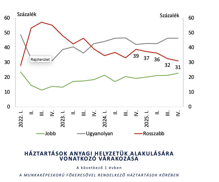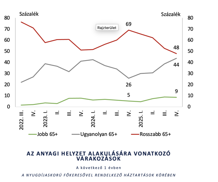 Még a nyugdíjasok is derűlátóvá váltak 2025 utolsó negyedévében, pedig korábban igencsak pesszimistán tekintettek a jövőbe – derül ki az MNB lakossági megtakarítási felméréséből. A jegybank negyedévente publikált felmérése alapján immár egy éve folyamatosan csökken a következő 12 hónapban rosszabb anyagi helyzetet várók aránya.