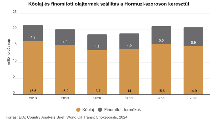 Irán a nyugati és izraeli katonai csapásokra válaszul olyan eszközhöz nyúlt, amely jelentőségét aligha lehet túlbecsülni. Ezen a szűk tengeri kapun normál időszakban napi mintegy 20-21 millió hordó olaj és finomított termék, a globális kőolajfogyasztás körülbelül egyötöde halad át, miközben a világ LNG-kereskedelmének közel 20 százaléka is itt bonyolódik. Emellett jelentős műtrágya-, petrolkémiai és egyéb ipari termék szállítása is ehhez az útvonalhoz kötődik, ezért a Hormuzi-szoros a világgazdaság egyik legnehezebben helyettesíthető szűk keresztmetszete.
