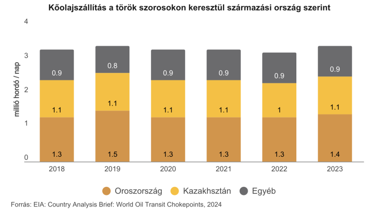 A dán szorosok és a Dardanellák kevésbé vannak reflektorfényben, mégis komoly geopolitikai jelentőséggel bírnak. Kulcsfontosságú kijáratot jelentenek az orosz energiahordozó-export számára, itt halad át az orosz tengeri nyersolajexport közel egyharmada. A török szorosok pedig a Fekete-tenger térségéből érkező forgalom, köztük a kazah export szempontjából jelentenek stratégiai útvonalat.