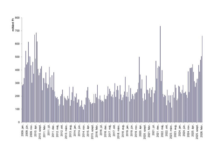 A márciust a fokozódó kockázatkerülés jellemezte a tőkepiacokon. Az Európai Központi Bank (EKB) frissített előrejelzése szerint az eurózóna 2026-os gazdasági növekedése 0,9 százalékra eshet vissza az év során, míg az átlagos infláció 2,6 százalékra nőhet. A befektetői kedvre a nemzetközi gazdaság kilátások alakulása mellett a közel-keleti konfliktus elhúzódása és az energiapiaci turbulencia is negatív hatással voltak.