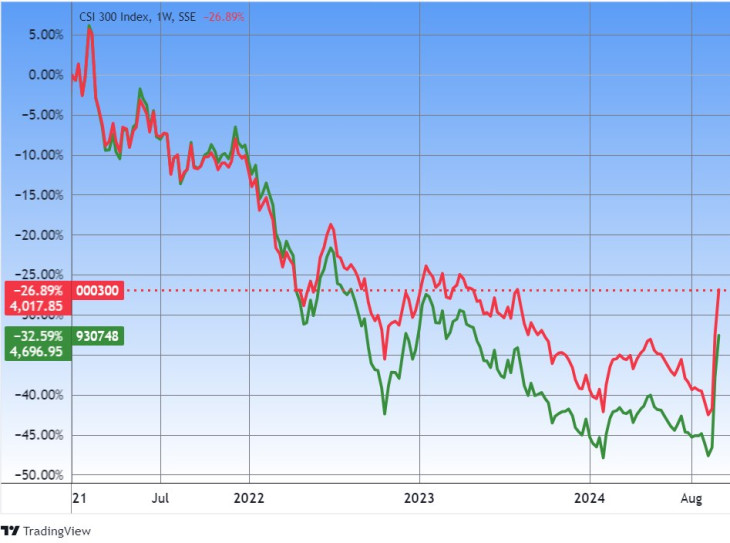 A CSI 300 index előzőleg a 2021-es csúcsról szeptember közepéig értékének több mint 45 százalékát veszítette el. Egyes ipari nyersanyagok is emelkednek a kínai optimizmus hatására, a vasérc vezetésével. A japán részvények viszont egy belpolitikai fordulat nyomán estek.