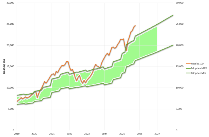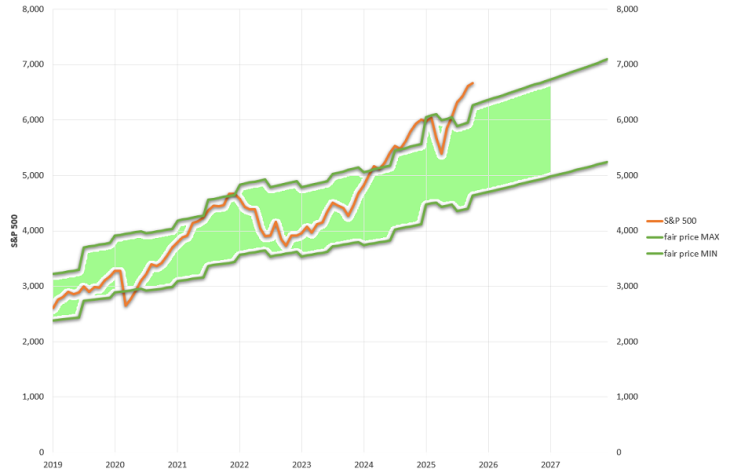 Azóta sok víz lefolyt sok nagy folyón, frissítettem modelljeimet, és megnéztem, ma mit mutatnak a számok. Jelenleg az alábbiak mentén gondolkodtam-gondolkodom az S&P 500 és a Nasdaq 100 fair értékéről.