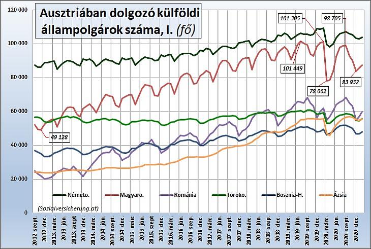 Míg decemberben 6000 magyar veszítette el munkáját Ausztriában, addig januárban és februárban ennek több mint a fele visszatért – derül ki az osztrák Sozialversicherung.at statisztikájából. Február végén 87 328, januárban mintegy 85 500, decemberben pedig alig 84 ezer magyar állampolgárságú dolgozót tartottak hivatalosan nyilván a szomszédainknál.