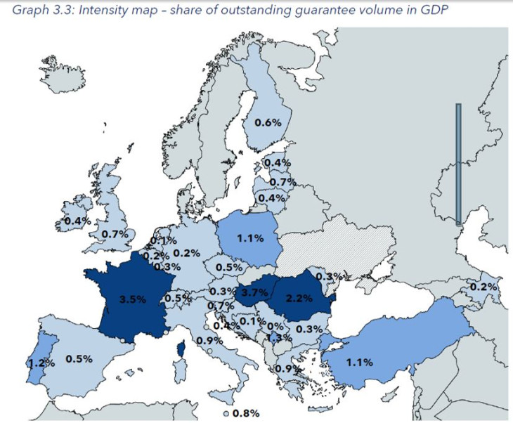 Az AECM statisztikái szerint Magyarország mellett Franciaország és Románia áll a dobogón, 3,5 illetve 2,2 százalékos GDP-arányos garanciaállománnyal. Ezzel hazánk egyértelműen vezeti a mezőnyt, jól mutatva, hogy a garanciaintézmények anticiklikus szerepe Magyarországon a legerősebb.